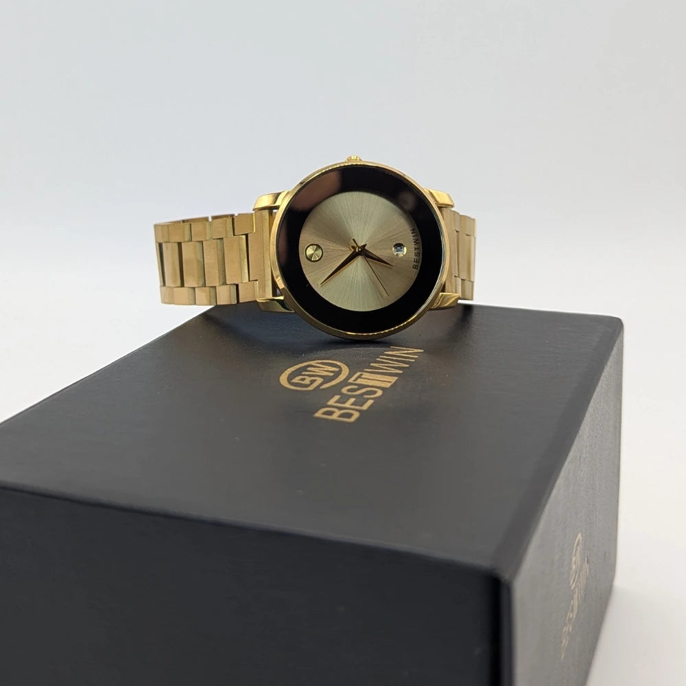 Luxurious gold wristwatch highlighting date display delivers timeless elegance for sophisticated modern gentlemen everywhere